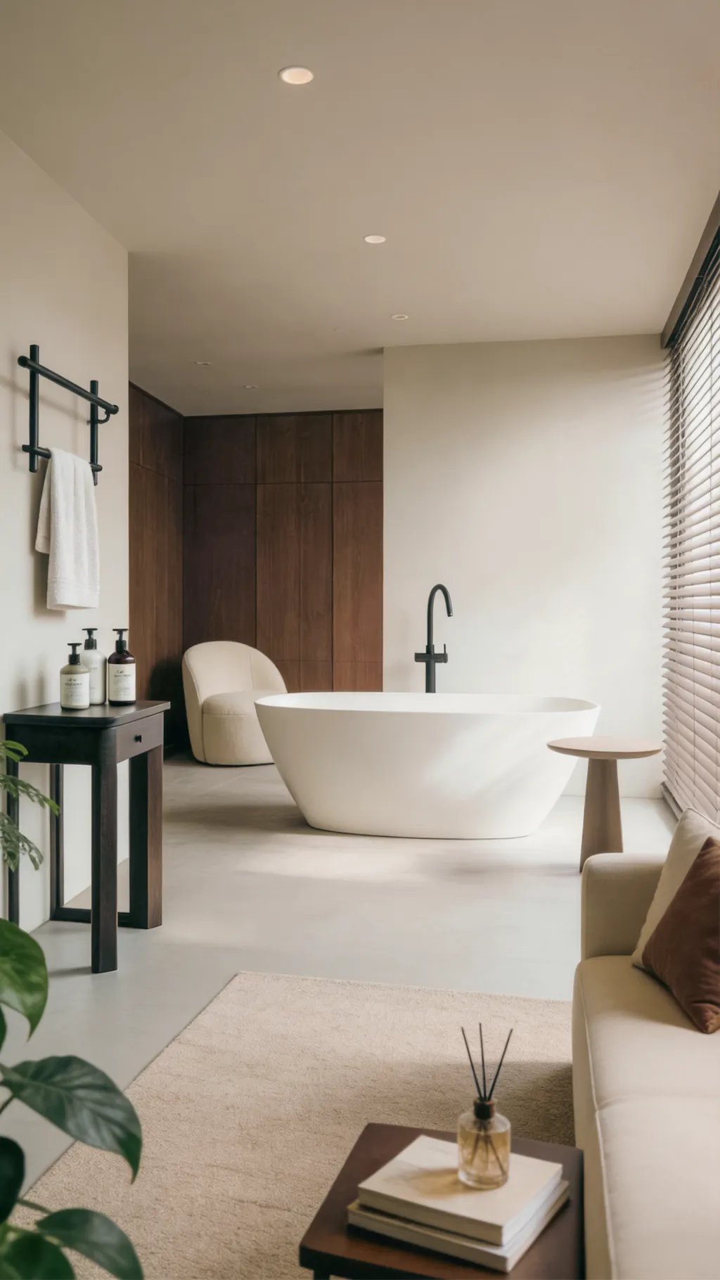 Designed with bathing comfort in mind, the gently contoured interior supports the body naturally, encouraging relaxation during longer soaks. The freestanding format allows flexible placement within the bathroom, whether positioned centrally as a statement piece or aligned with architectural features for a refined, cohesive layout.